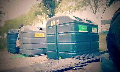 Public toilet bareback fuck with t-girl