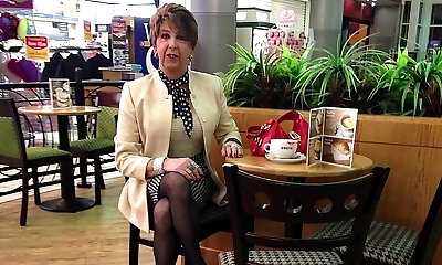 Amateur crossdresser Kellycd2022 sexy cougar Saturday afternoon drive in tan stockings and fishnet stockings masturbating cumshot