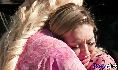 Tanned ladyboy Mara Nova fucks deep throat and tastey cunt of blonde hooker