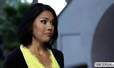 Exotic blonde transgirl Mara Nova rips juicy Asian pussy