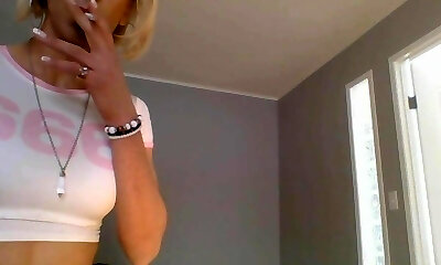 Curvylicious Transsexual beauty smokes before jerkoff