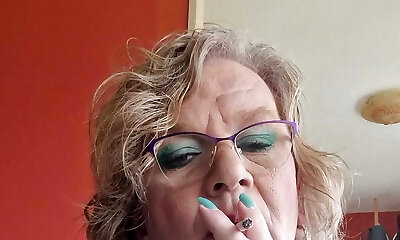 Carla loves a smoke and rubs her cock